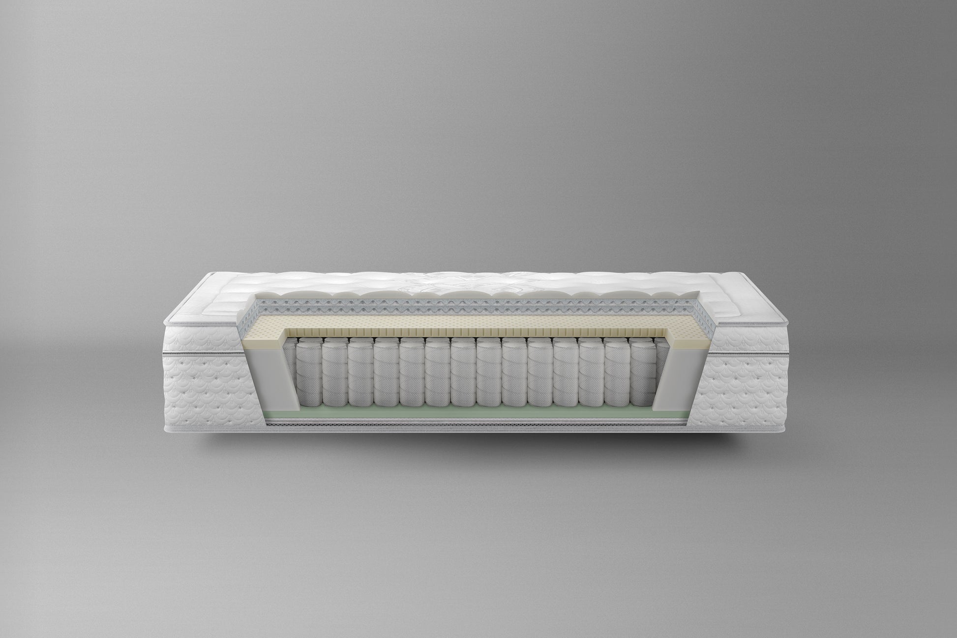 Los 4 cm de látex 100% natural aportan elasticidad, frescura e higiene, mientras que el sistema de muelles ensacados favorece la independencia de movimientos y una correcta distribución del peso. Las capas de Cloud Foam® perfilada y algodón natural potencian la transpirabilidad y el confort durante toda la noche.